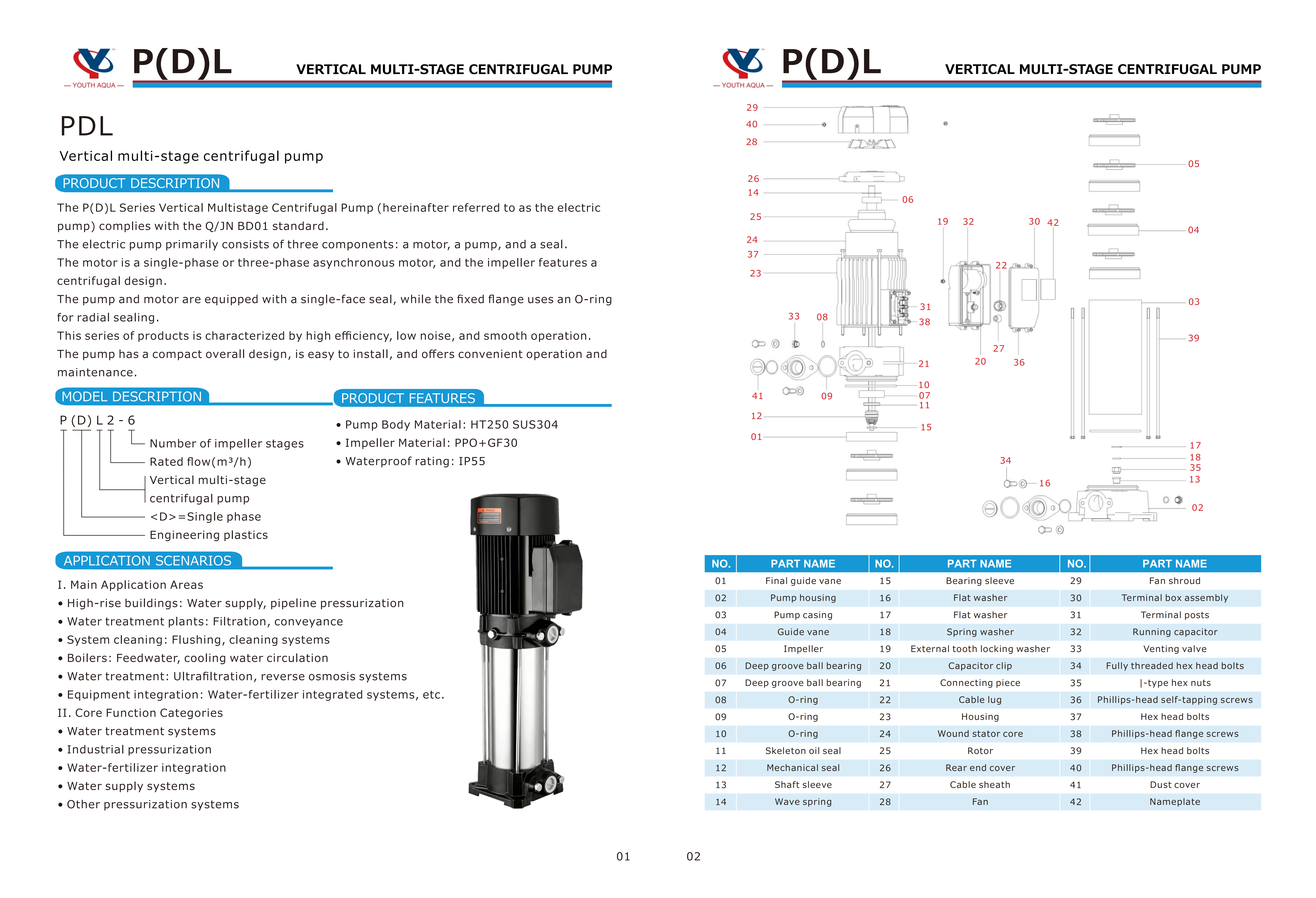 The P(D)L Series Vertical Multistage Centrifugal Pump (hereinafter referred to as the electric pump) complies with the Q/JN BDO1 standard.